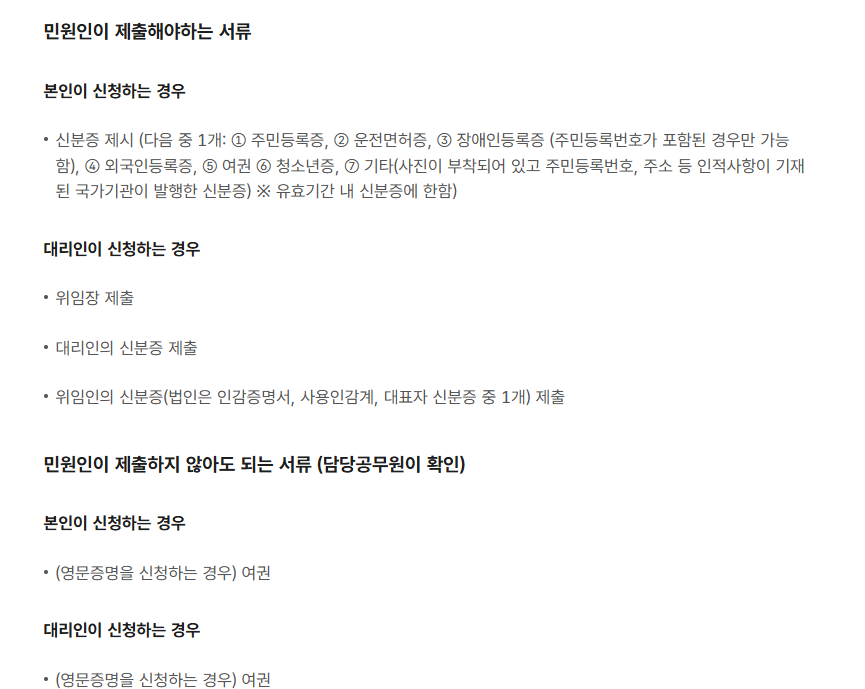 - 본인의 인적 사항 확인 (이름, 주민등록번호 등)