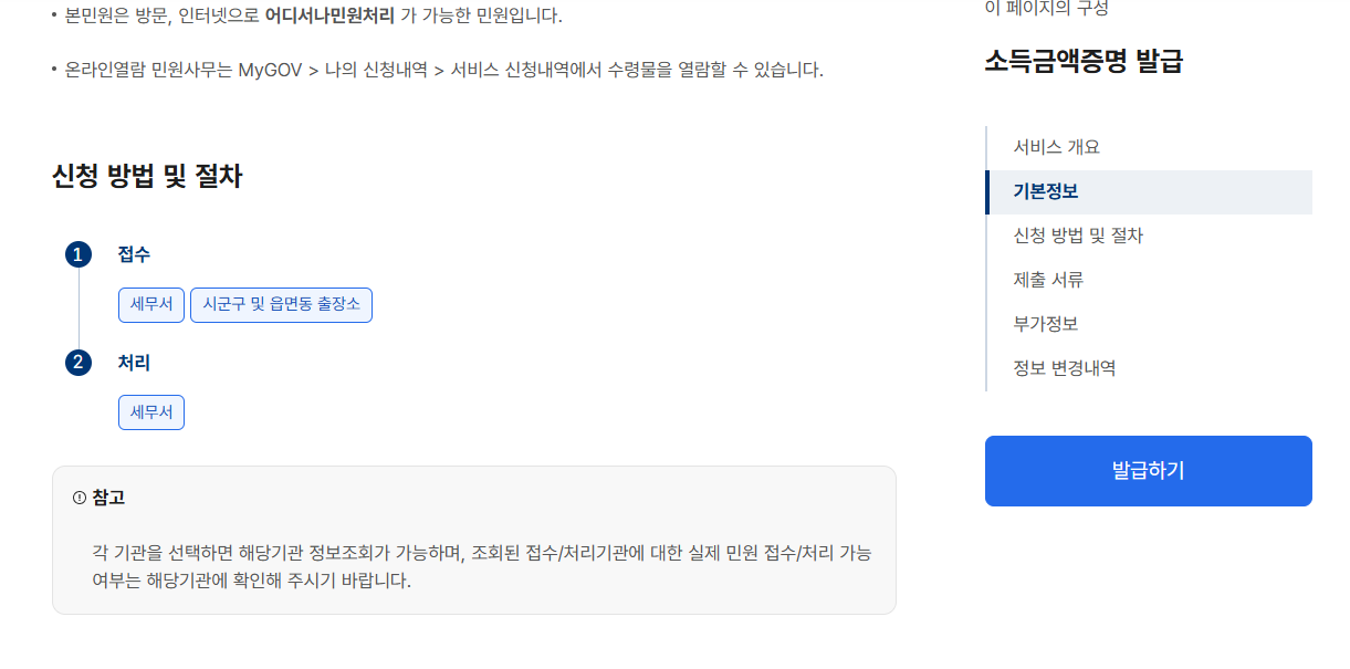 소득금액증명 발급 | 민원안내 및 신청 | 정부24