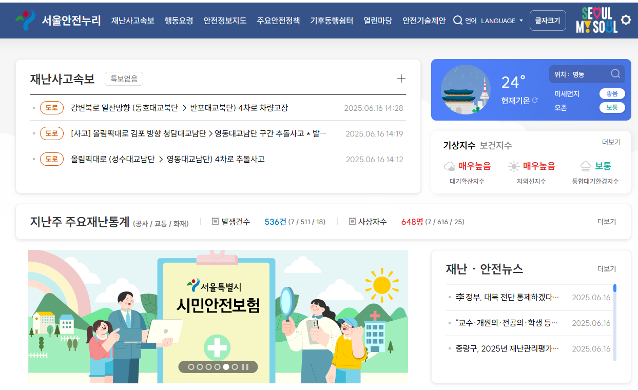서울안전누리 홈페이지 접속