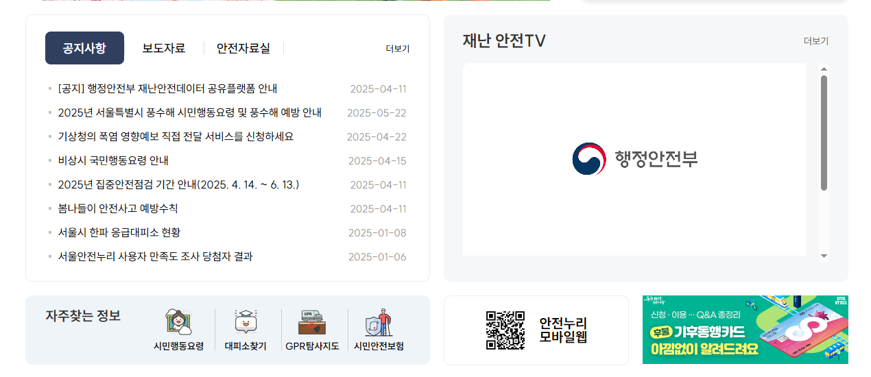 2. 메인화면에서 ‘자주 찾는 정보’ 또는 ‘안전정보지도’ 메뉴 클릭