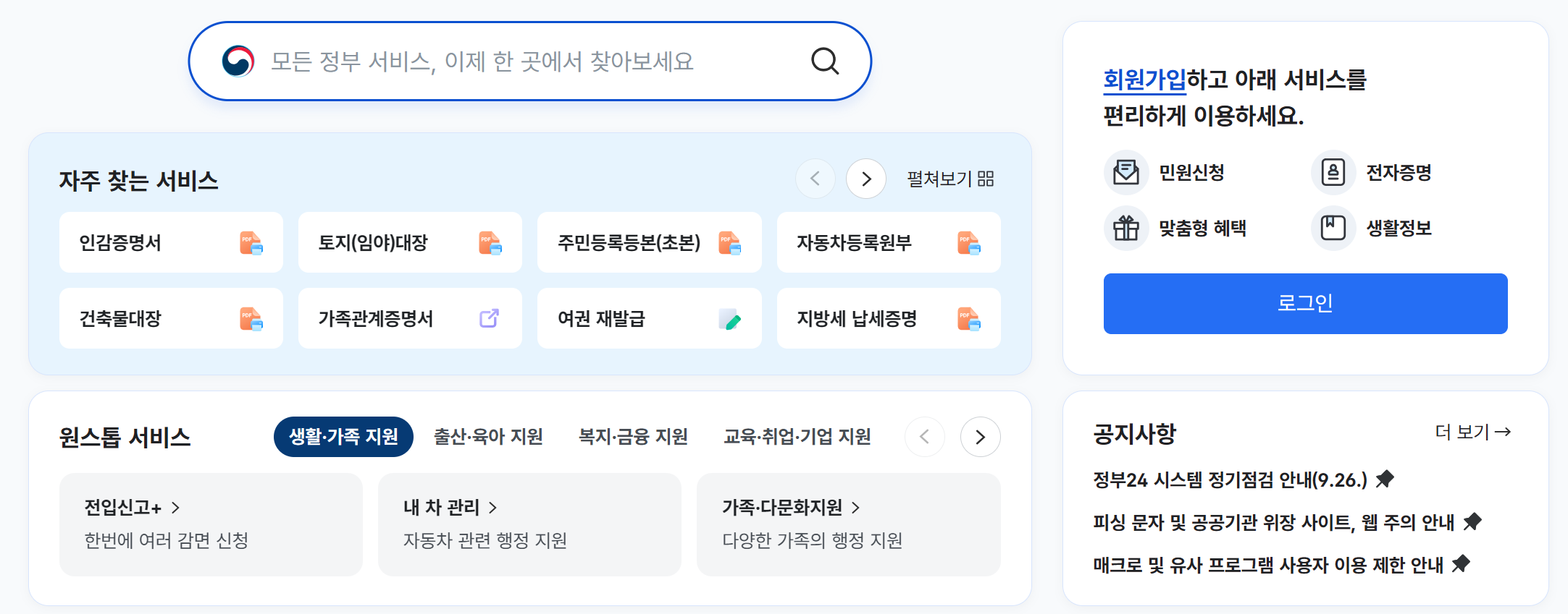 정부24시 홈페이지는 대한민국 공식 전자정부 포털로, 국민이 필요로 하는 각종 민원 서비스를 한 곳에서 제공하는 종합 행정 플랫폼입니다.