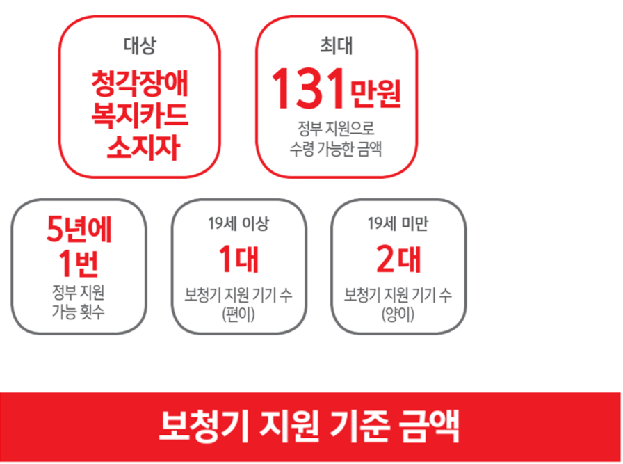 일반 청각장애등록자와 기초수급/차상위 청각장애등록자의 보청기지원금 진행절차가 다릅니다. 자세한 절차는 1661-0411로 문의해보세요.