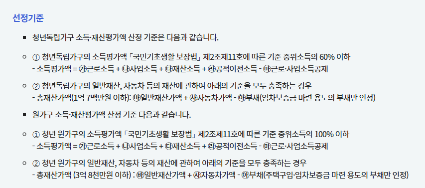 - 청년가구인 경우 재산가액은 1억 7백만원 이하여야하고