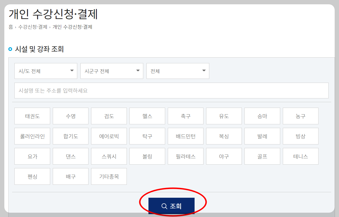스포츠바우처 홈페이지에서 대상이 되는 분들은 원하는 시설을 검색 후 강좌선택, 결제를 하고 시설을 이용하면 되겠습니다.