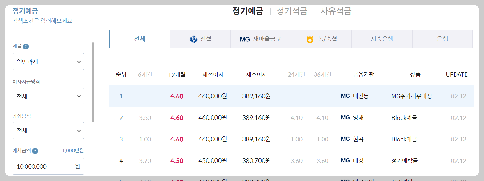 정기예금으로 재테크를 하기 위해서는 상대적으로 높은 금리의 저축은행이나 상호금융이 좋은데요, 사이트를 통해 한눈에 비교할 수 있으니 금액과 기간에 따라 비교 후 가입신청 하시면 됩니다.