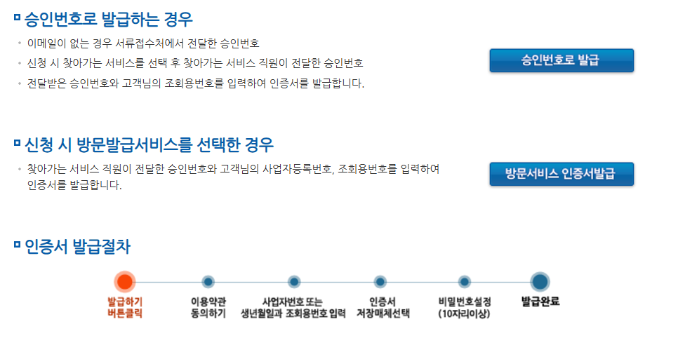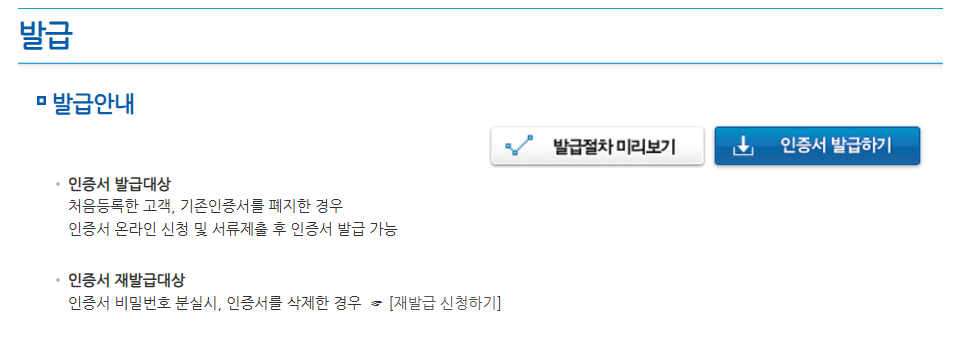 은행용과 증권/용 인증서는 무료이지만 서로 호환되지 않으므로, 필요에 따라 선택하세요.