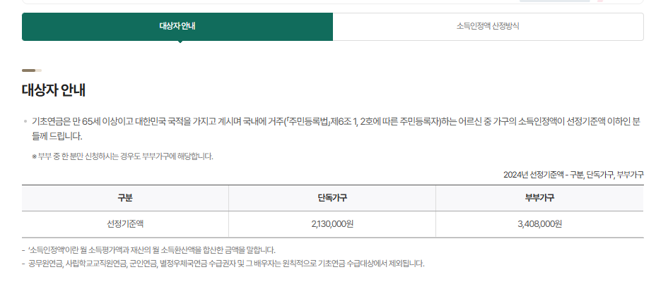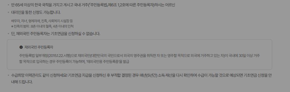 - 기초연금을 받는 경우, 생계급여 지급액에서 해당 금액만큼 차감됩니다.