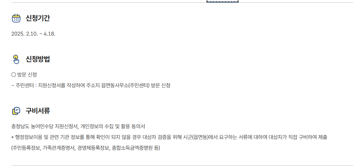 거주 지역의 지자체 홈페이지나 주민센터를 통해 공고를 확인하고, 필요한 서류를 준비하여 빠르게 신청하세요. 농어민수당을 통해 보다 안정적인 농어업 경영을 이어가길 바랍니다!