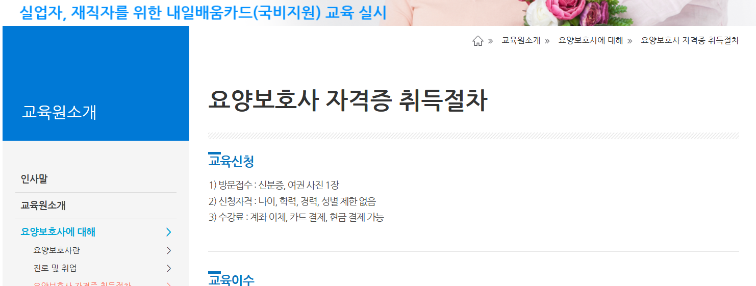 - 실습 및 이론 교육을 마친 후, 요양보호사 자격시험에 합격해야 합니다.